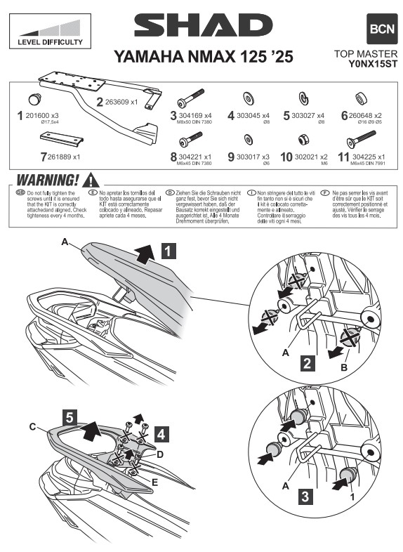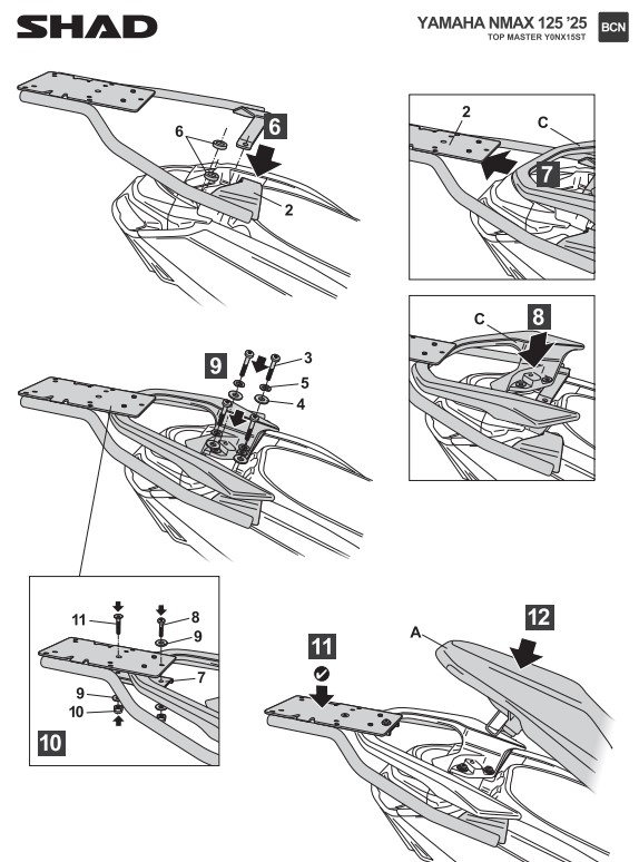 La fijación trasera SHAD Yamaha NMAX 125i 155 es la solución perfecta para quienes buscan instalar una maleta superior en su scooter de forma fácil, segura y específica. Esta fijación SHAD Top Master ha sido diseñada teniendo en cuenta todas las características técnicas y estructurales de la Yamaha N-MAX 125i/155, garantizando un ajuste perfecto y máxima seguridad tanto en ruta urbana como en trayectos largos. Fabricada con materiales de alta calidad, la fijación asegura una excelente resistencia a la vibración y a las condiciones climáticas adversas, ofreciendo durabilidad y confianza en cada viaje.