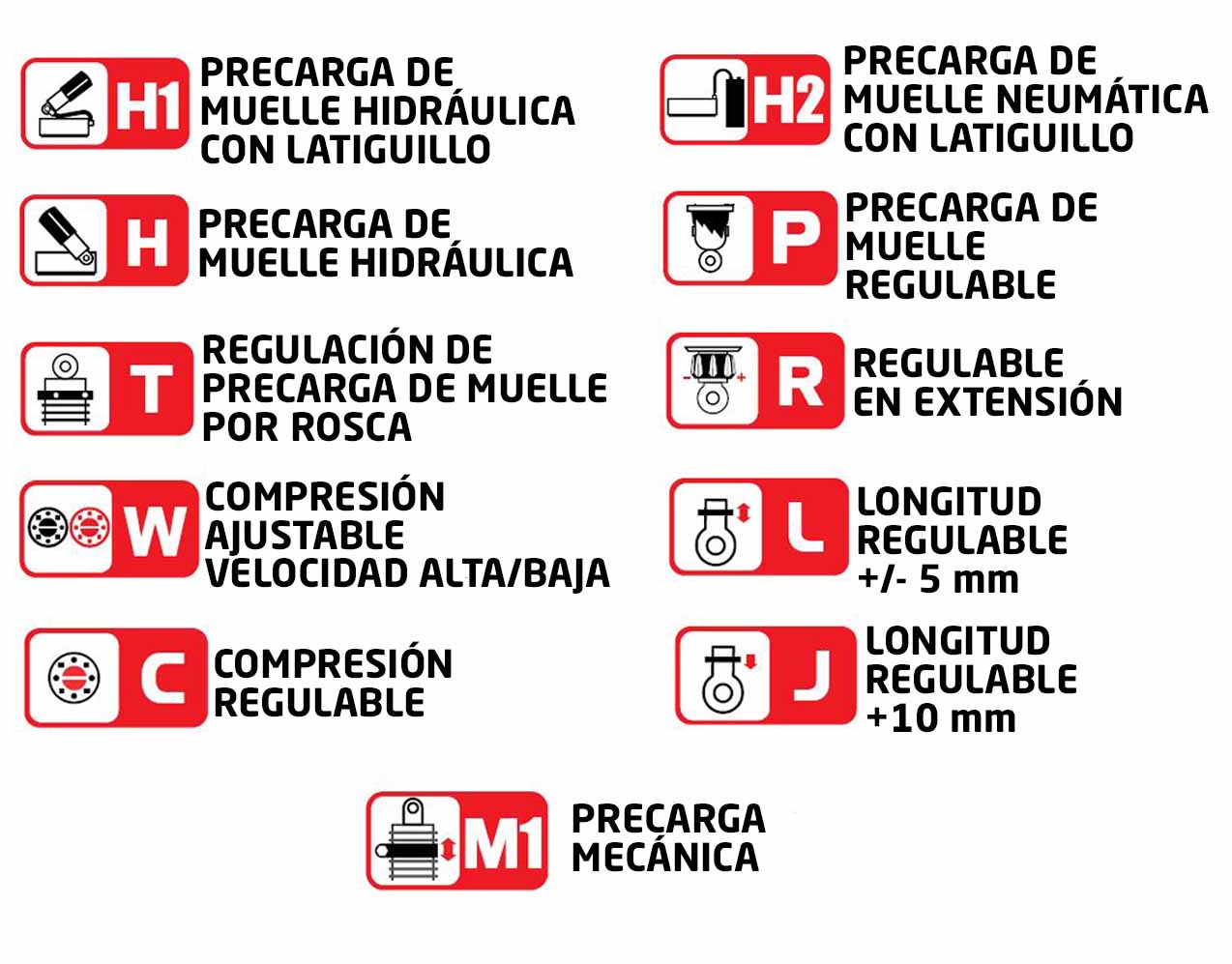 - Diámetro de pistón 22 mm para mejor absorción
