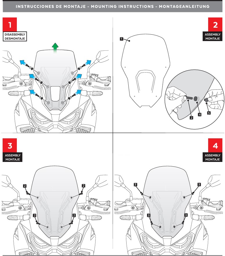 Integra silentblocks que aíslan la pantalla de las vibraciones del motor, garantizando firmeza y estabilidad incluso a altas revoluciones. Incluye estudio aerodinámico comparativo con la pantalla original, validado en túnel de viento virtual.