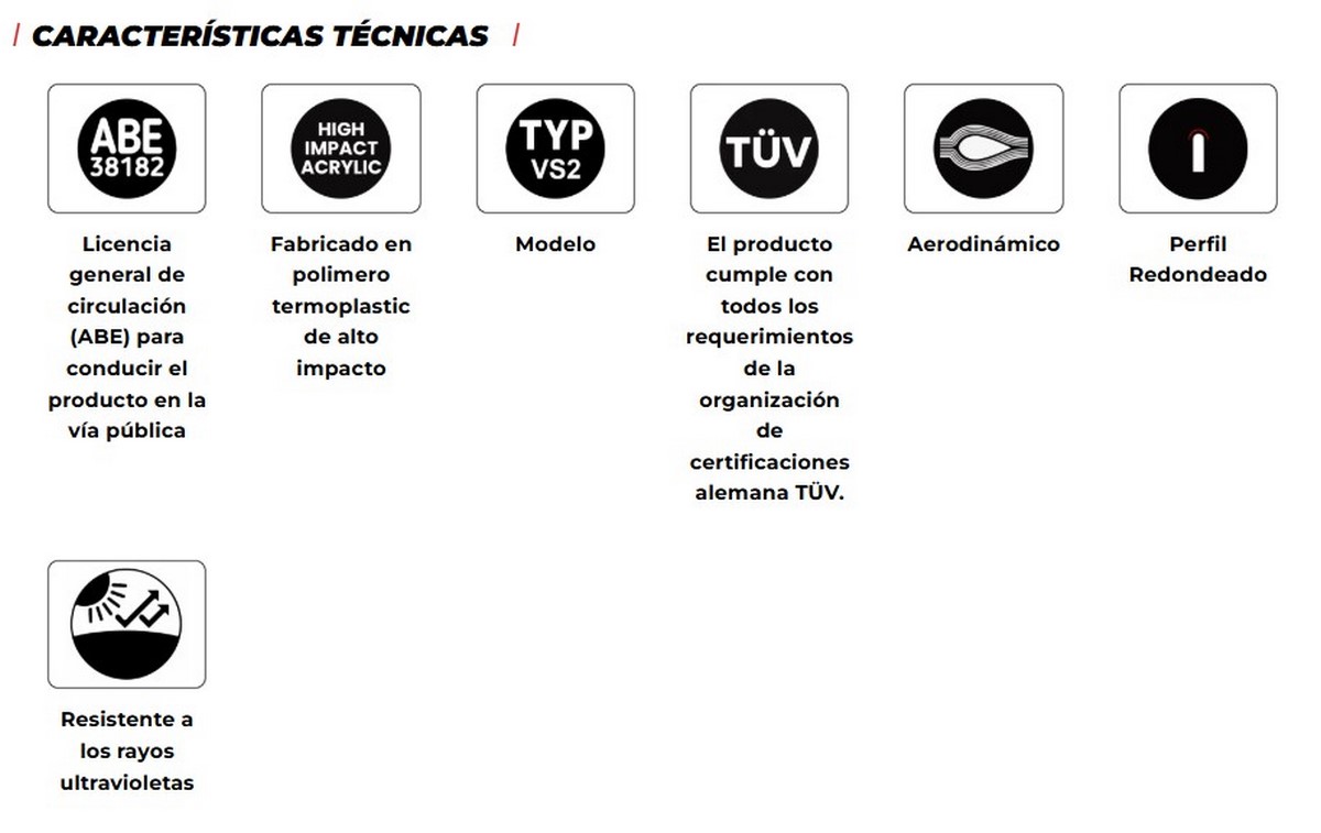 Uso: Protección aerodinámica y confort en conducción touring