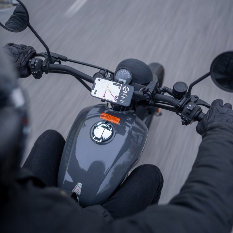 Atención: Si utiliza un smartphone con un estabilizador de imagen mecánico, recomendamos el uso de nuestro módulo reductor de vibraciones adicional, el Anti Vibration Module, para evitar de la mejor manera los posibles daños en el estabilizador de la cámara del teléfono causado por las vibraciones del motor de la moto. Si sigue teniendo problemas, no utilice el producto en combinación con este smartphone y póngase en contacto con el fabricante de su smartphone si no está seguro.
